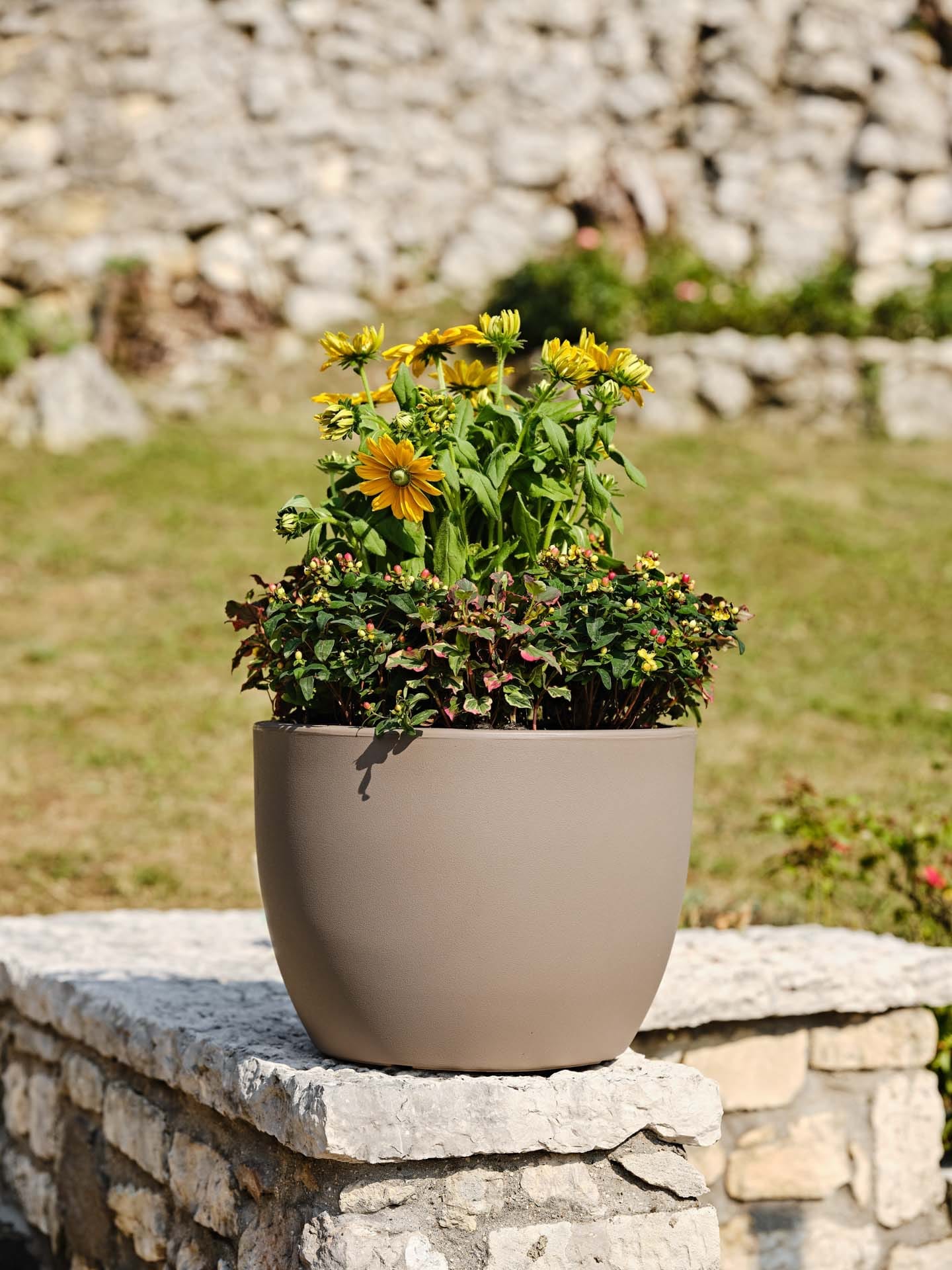 Ares is the roundshaped pot suitable for decorating indoor and outdoor spaces.