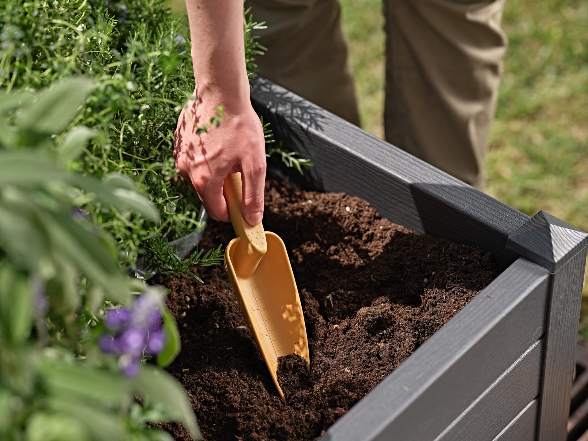 La trasplantadora estrecha es la herramienta de jardinería ligera y duradera que facilita las operaciones de plantación de las flores en el jardín. La empuñadura ergonómica facilita la tarea y evita la fatigas innecesarias y la escala graduada te guía en la dosificación correcta de tierra o nutrientes.