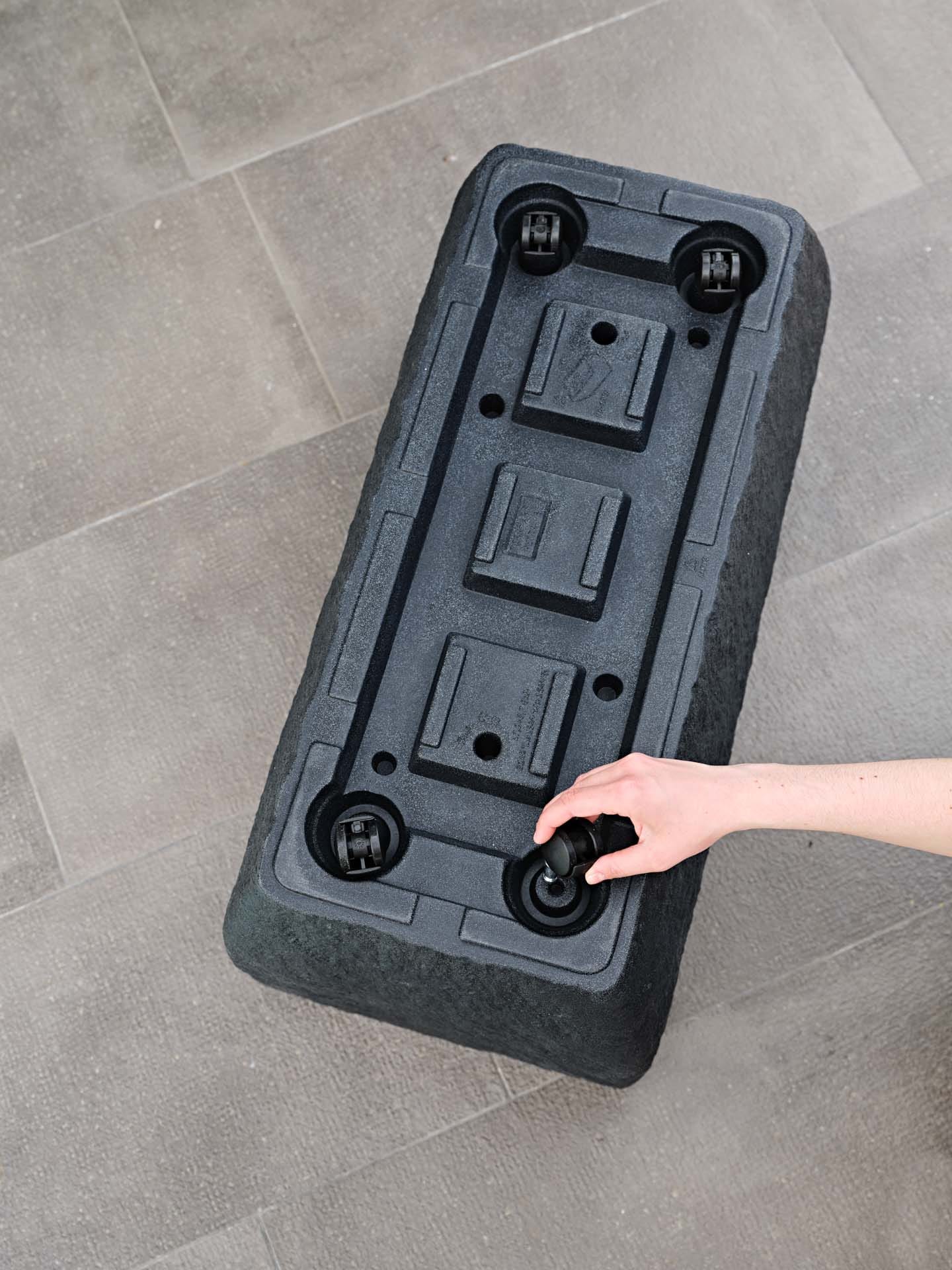 Con rejilla para la reserva de agua e indicador de nivel. Posibilidad de combinar las ruedas retráctiles.